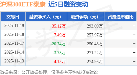 本站消息正规配资十大排名,11月19日,沪深300ETF泰康(515380)融资买入73.09万元,融资偿还37.97万元,融资净买入35.12万元,融资余额293.09万元。
