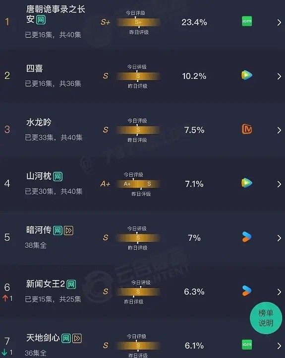这样的情况出现,《山河枕》的热度变得更低,细心的网友发现,这部剧的云合数据评级竟从S级,变成A+级,这确实是非常少见的,最终,《山河枕》以热度25000,豆瓣5.3分结束。