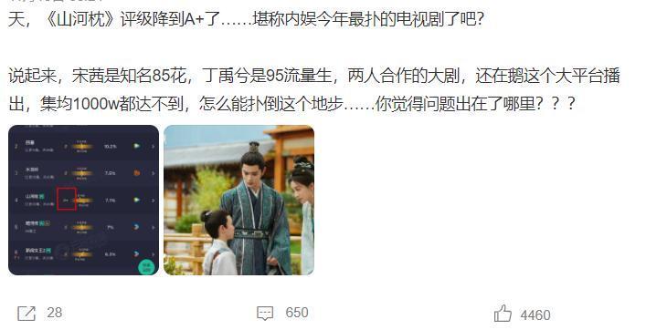 这样的情况出现,很多网友忍不住问:《山河枕》算今年最“扑”的剧吗?其实,答案肯定是否定的,因为有很多古装剧播出后,根本没有获得关注,相比之下,《山河枕》只是热度没有上去。