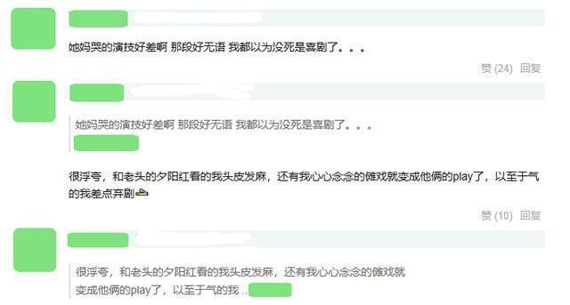可在新剧中,她却以一己之力,拉低了整部剧的演技水准,甚至连“女儿失踪”的戏份都能演成喜剧,看得观众的怒气都已经收不住了。