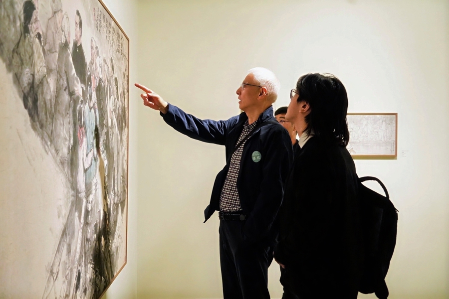 可见,课徒稿是理解中国绘画传承的关键意象,“其核心在于看到中国画家是如何看待客观世界的。”在第二展厅,“课徒授业——中国传统写意画的‘课徒’理念”展览展出朱颖人、吴永良、张立辰、姜宝林、卓鹤君5位艺术家的140余幅“课徒稿”作品。“课徒稿”作为中国传统书画教育的重要载体,体现了“言传身教”的教育理念。在展览现场,观众可以清晰地看到艺术家们如何通过一笔一墨的示范,将笔墨技法、构图要诀和审美理念具象化呈现。这些作品于2020年捐赠予复旦大学哲学学院。