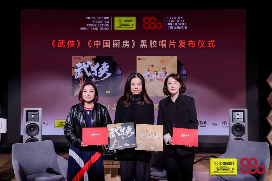 书香漫卷,乐韵流转。11月9日,上海图书馆东馆内,《武侠——为纪念金庸百年诞辰而作》《中国厨房——味觉的盛宴》两张原创交响黑胶全球首发,中国唱片(上海)有限公司与上海交响乐团联合主办的“江湖与烟火”音乐对谈吸引众多乐迷到来。