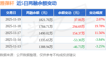 本站消息,11月19日,雅葆轩(920357)融资买入140.96万元,融资偿还103.96万元,融资净买入37.0万元,融资余额1821.7万元,近3个交易日已连续净买入累计486.06万元。