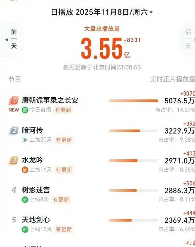 而《唐朝诡事录3》播出不到24小时,站内热度更是一路飙升至9500,这在没有顶流明星加持的古装剧中堪称奇迹。剧集全凭前两季累积的剧粉和扎实的剧情吸引观众,弹幕超百万条,微博主话题阅读量破10亿。不少观众化身“自来水”热情安利,使该剧迅速占据各大社交平台话题榜。